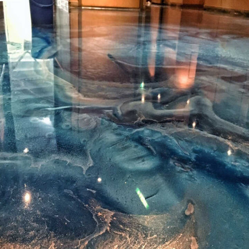 Epoksi şeffaf bir malzeme olduğu için pigment, metalik toz, sim veya doğal taş parçalarıyla renklendirilebilir.